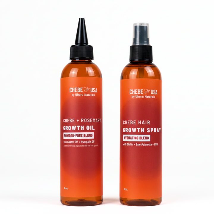 The Chebe + Rice Water Daily Spray will reduce breakage and shedding, restore your scalp and hair’s health, promote healthy hair growth, and improve the overall condition of your hair.