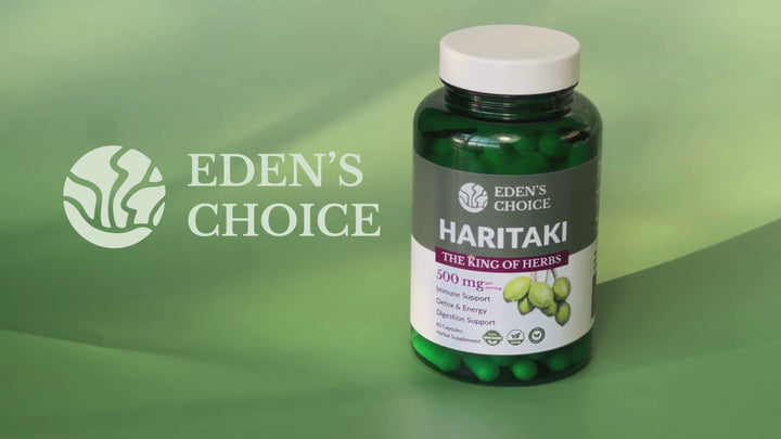 EDEN'S CHOICE is proud to offer pure Haritaki (Terminalia chebula), a foundational herb celebrated for thousands of years for its unique ability to cleanse, tone, and rejuvenate the entire body. Haritaki, known throughout history as "The King of Herbs," is one of the most revered botanicals in traditional wellness practices. Supports whole-body health, starting with your gut.